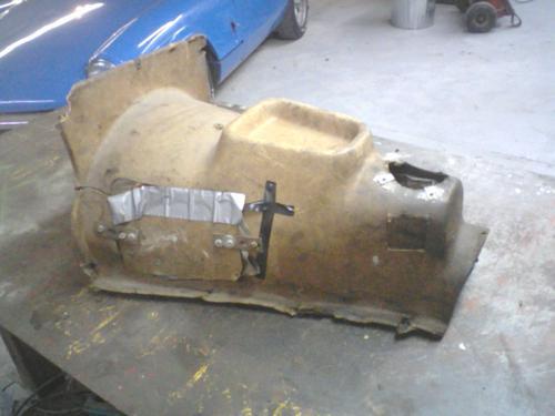 The old tunnel cover made from press board was very ratty so I purchased a fiberglass replacement. I had to cut out the whole for the shifter and the glued carpet to it.