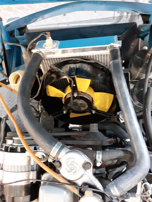 Cooling system cleanup. Didn't want to even begin to drive without making sure it was reliable. Installed aluminum unit from Champion Cooling (EC7980) cleaned up frame, housing, hoses.