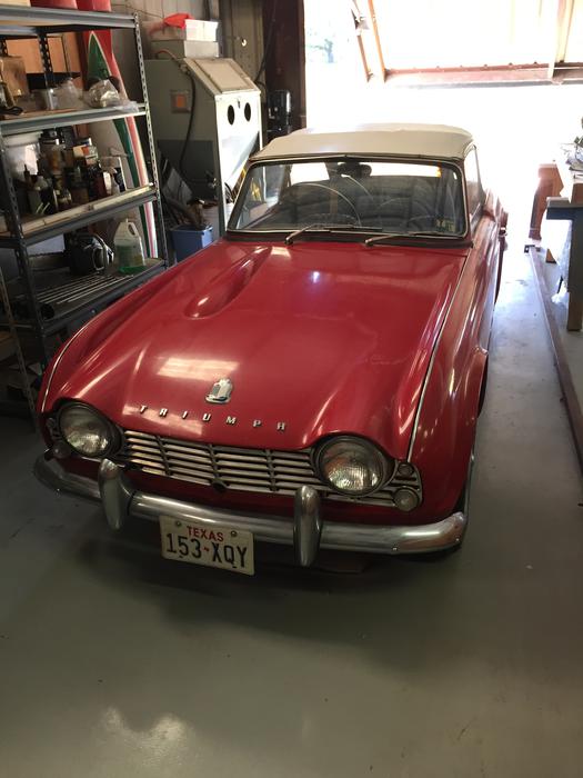 This TR 4 was sold new in Austin in August of 1962. I am the third owner. The car sat in storage from 1991 until March of 2018 when I purchased the car. After six months of mechanical work the car was put back on the road. The amazing thing to me was that when the car was restarted after 25 years everything worked. All the gauges, all the lights and it had great oil pressure. A long list of mechanical work has been completed to make it a safe and road worthy car. New carpet installed, all the rubber replaced and other incidental work performed. The best thing is that it is a great survivor and is very original. In fact it was never converted to negative ground. The car has no rust other than slight surface rust on the frame rails. I was drawn to the car because of its originality. It is great to drive as is ( I took a 100 mile drive) a couple of weeks ago and it really needs nothing to enjoy it. Due to health issues I am forced to part with the car. CONTACT me at 512-695-9377